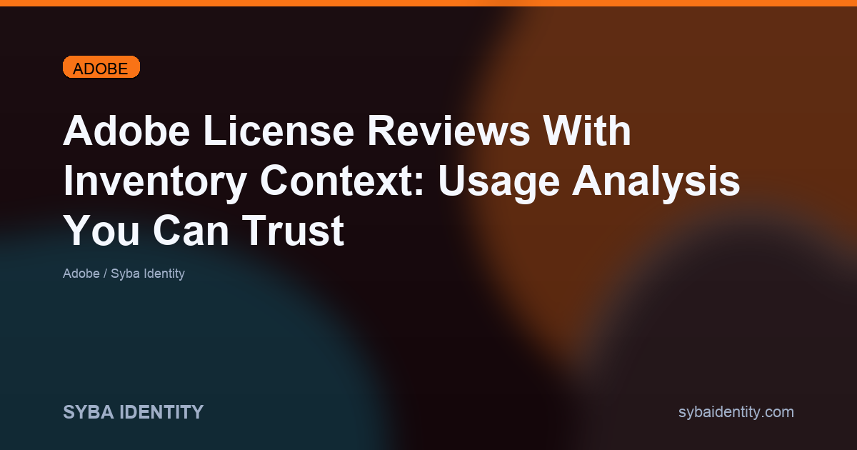 Syba Identity’s Adobe reporting is designed to make Adobe license reviews operational: bring assignment and usage context together, normalize product visibility, and connect Adobe entitlements to inventory context where available. This supports the platform’s focus on optimization and operational efficiency (Syba Identity).