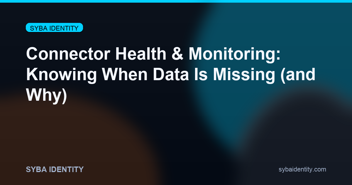 Syba’s connector health monitoring is designed to keep connected systems visible, predictable, and explainable, so teams can trust the outputs and focus on the operational decisions those outputs support (Syba Identity).